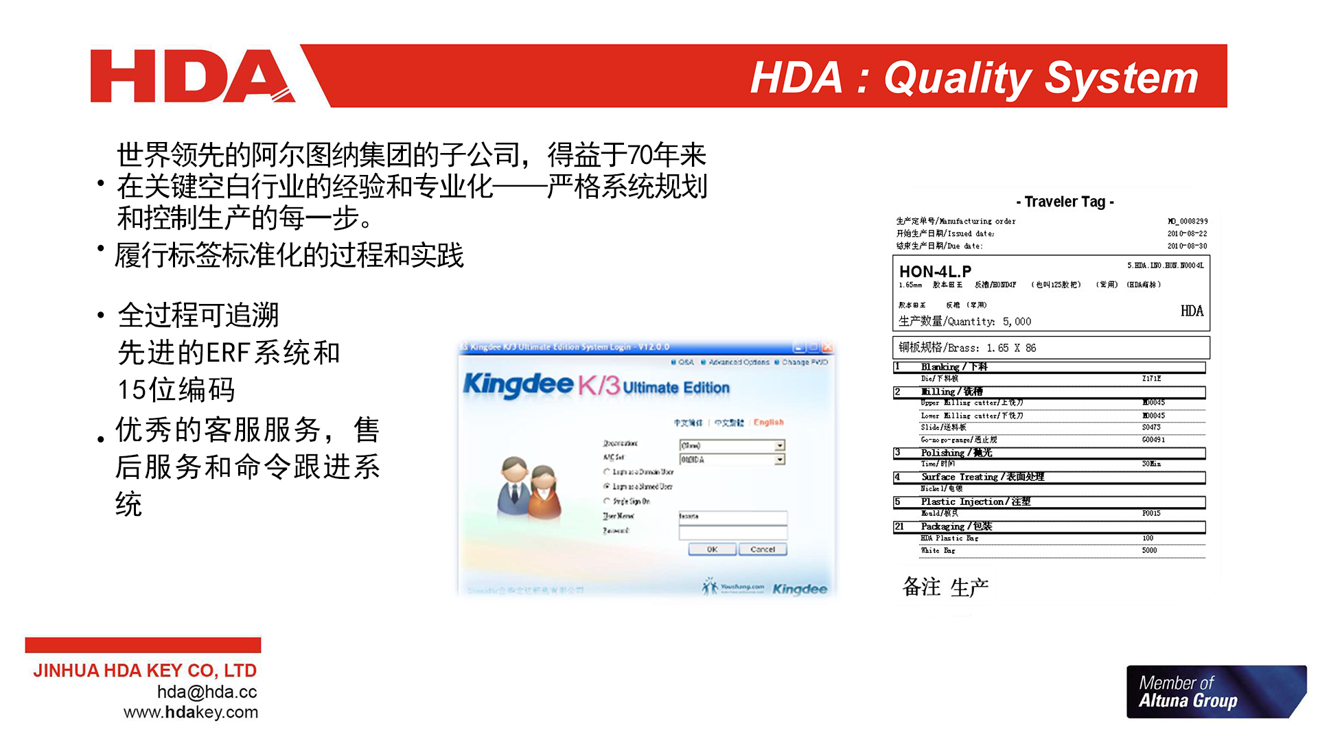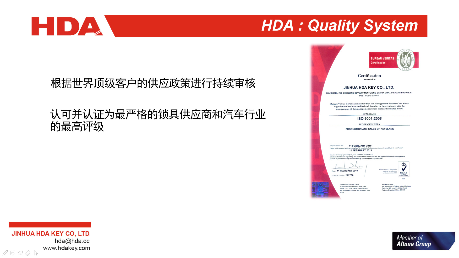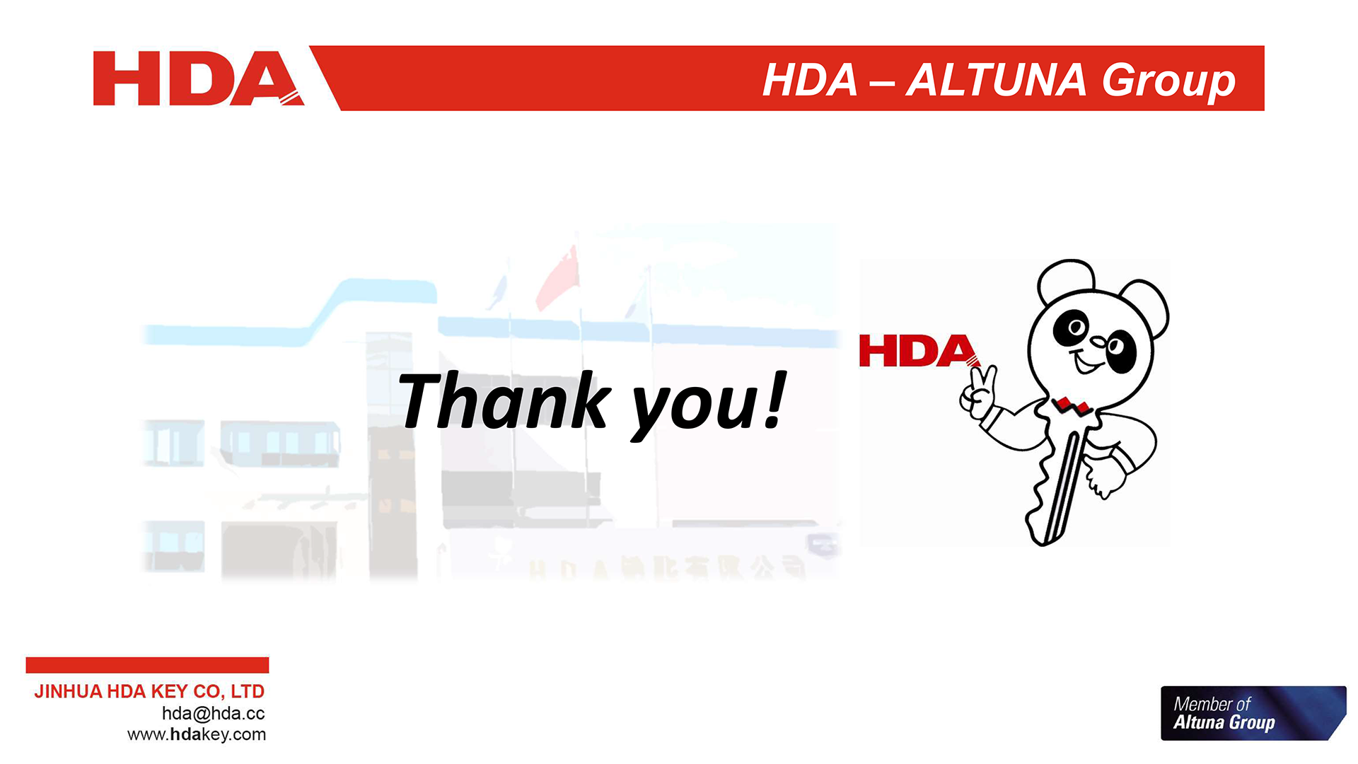 2005年,與歐洲三大鑰匙坯生產企業(yè)之一的西班牙JMA集團成立合資公司--金華HDA鑰匙有限公司。 2007年,轉為西班牙JMA集團獨資子公司。